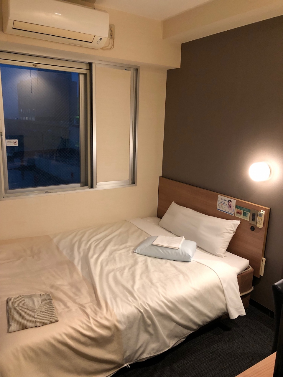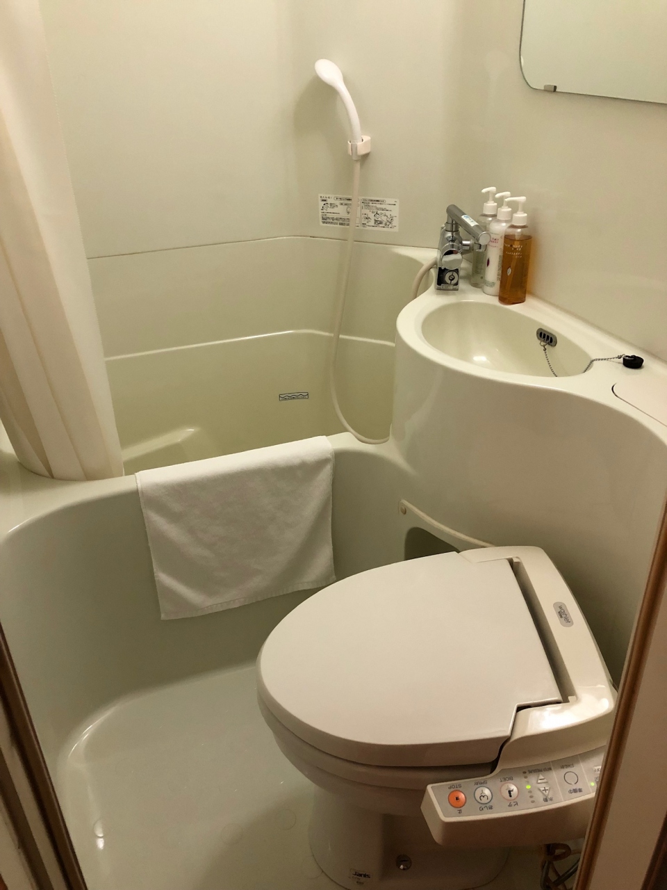改善点としては、ビジネスホテルあるあるですが、ユニットバスのトイレが狭くて、圧迫感があるのと、水回りと廊下の段差が大きく、足をぶつけそうになる点ですかね。