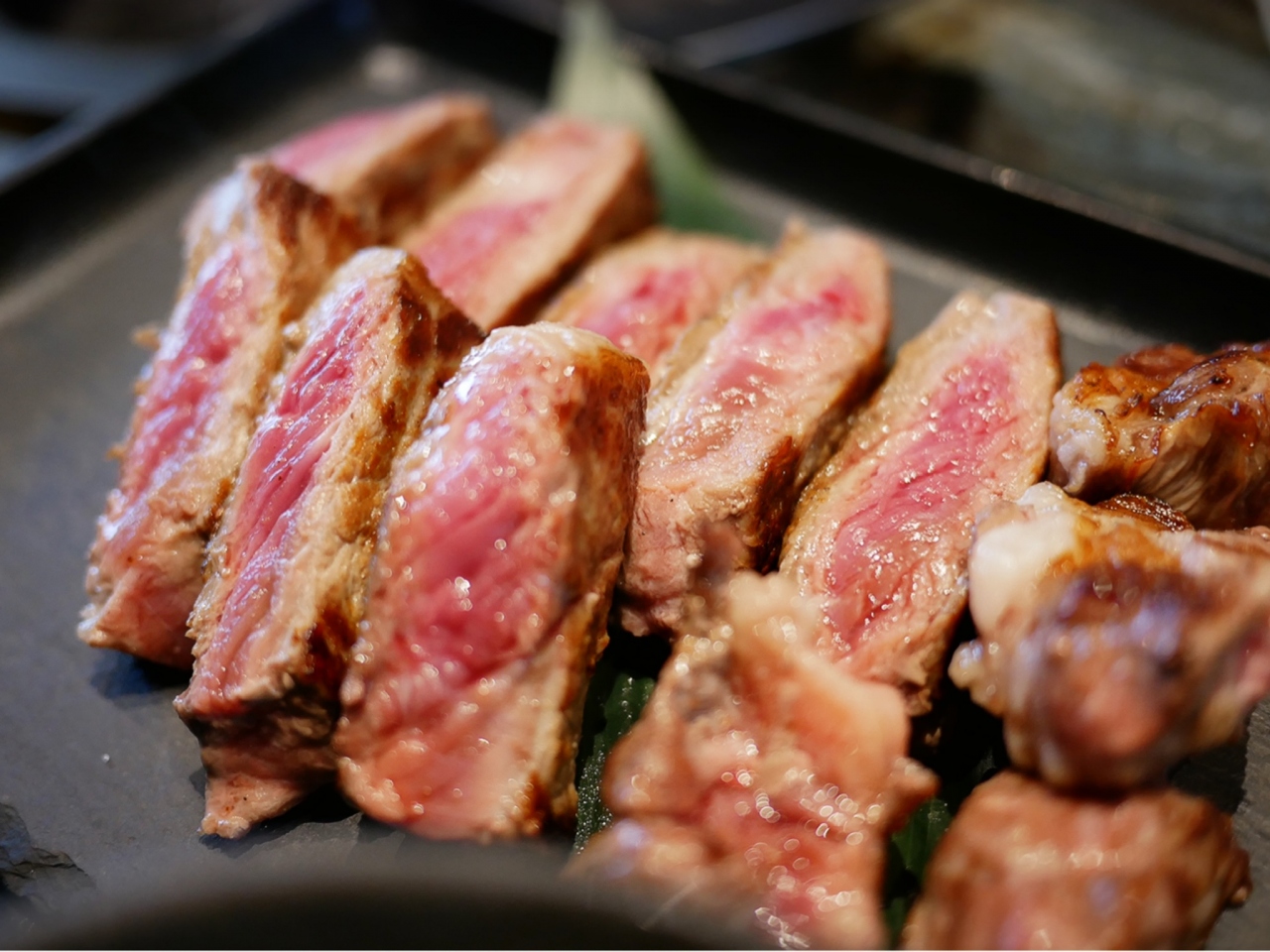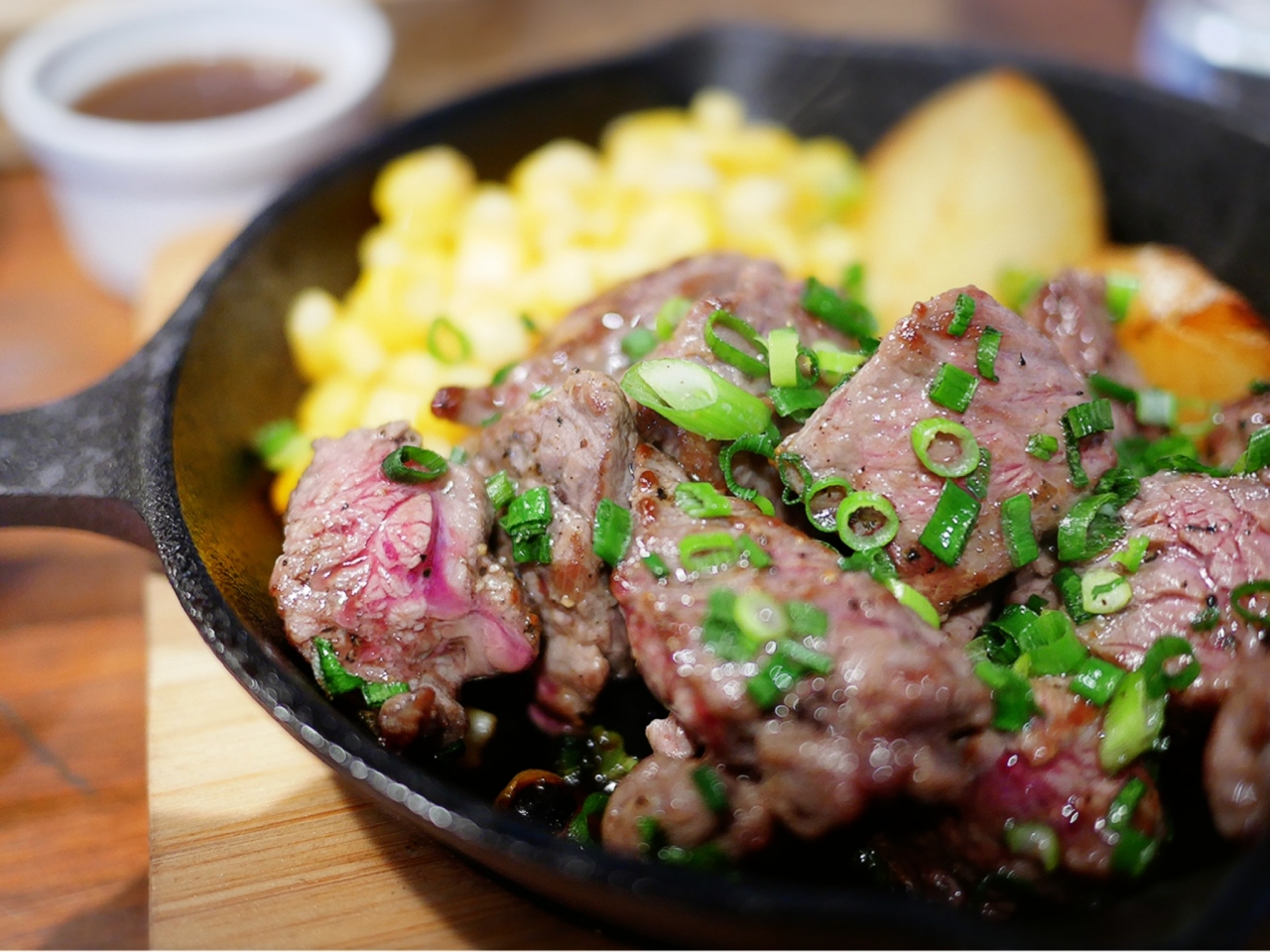 続いて、サイコロステーキは熱々の鉄板で提供されました。