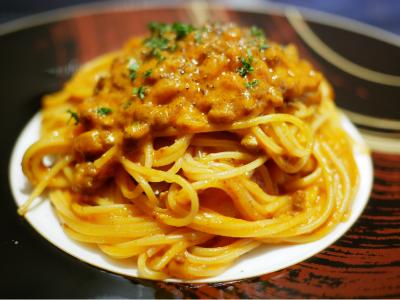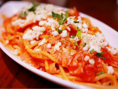 この日の日替わりは、ハムとモッツアレラチーズのトマトソースパスタ。