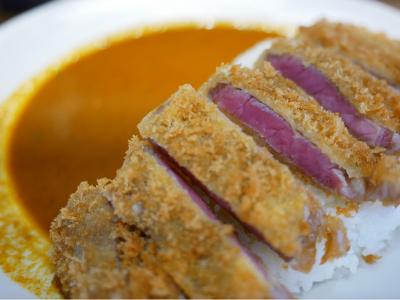 レアーな牛カツは中はしっとり、外はさっくり揚っていて、カレーと合わせてもイケますし、ソースを少しかけて頂いても、イケてます。カツに厚みがあって、美味しいです。