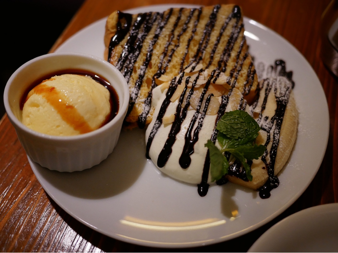 シフォンケーキ自体は、特別感はないですが、チョコバナナソースは万能なので美味しく頂きました。黒蜜のかかったバニラアイスは美味しかったです。