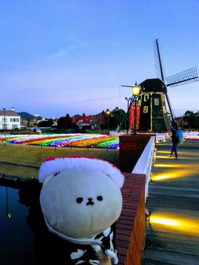 夕方からパーク内にイルミネーションを観に行ったけど霧のような雨がひどく...