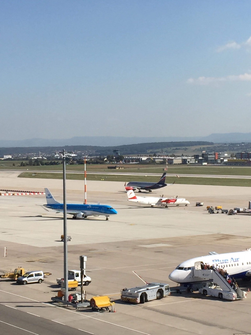 Eurowingsの乗り換えで利用しました。展望デッキが滑走路の延長ぐらいの位置にあり、離陸と着陸をほぼ真っすぐに見ることができます。市内へも電車で往復1時間位で行けるので、街にフラッと観光に出るのもありだと思います。