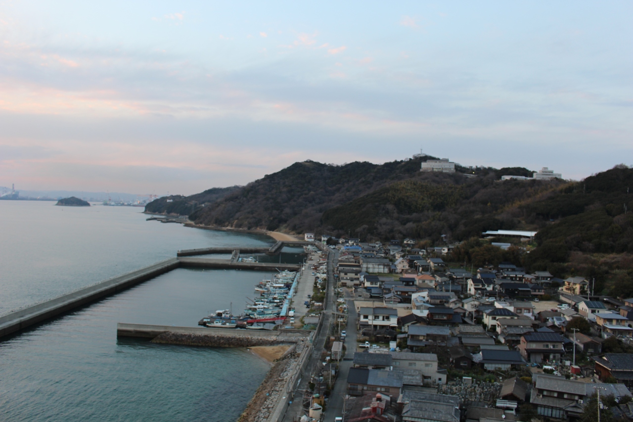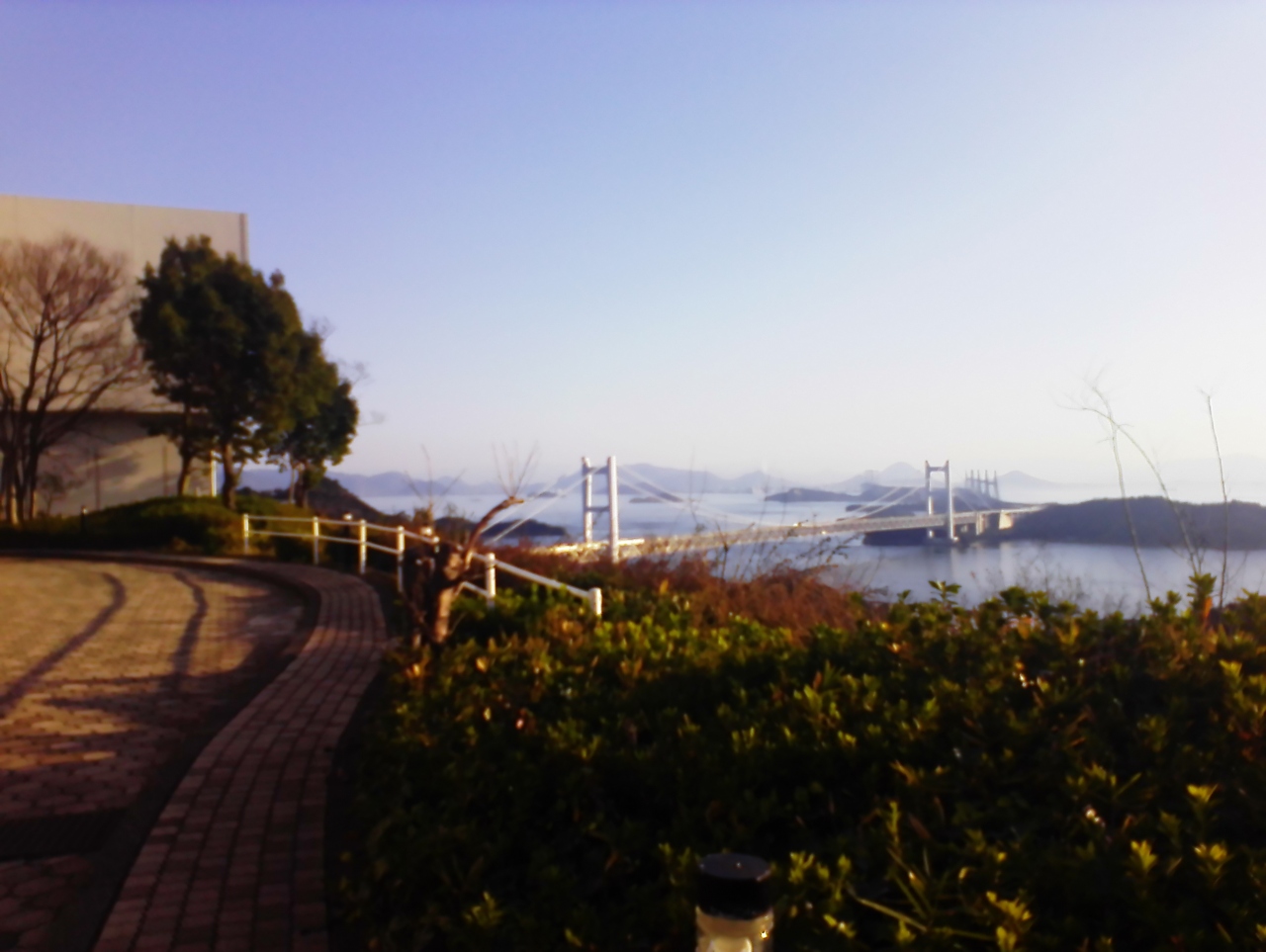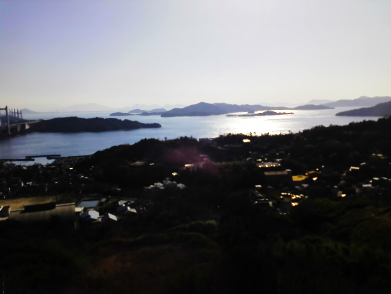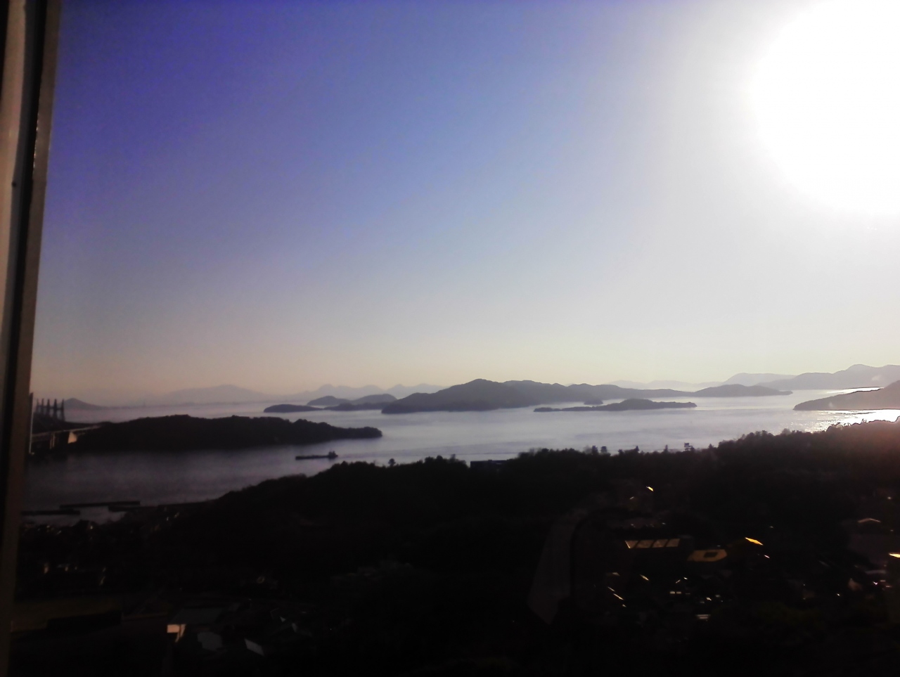 1月16日快晴の日差しが暖かく冬の澄んだ空気の中,瀬戸内の島々と穏やかな海に太陽の日差しが照り返し眩しいくらいで、持参の8インチタブレットで景色の方に向けても明るさで液晶の画面が確認できないほどであった。
