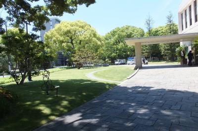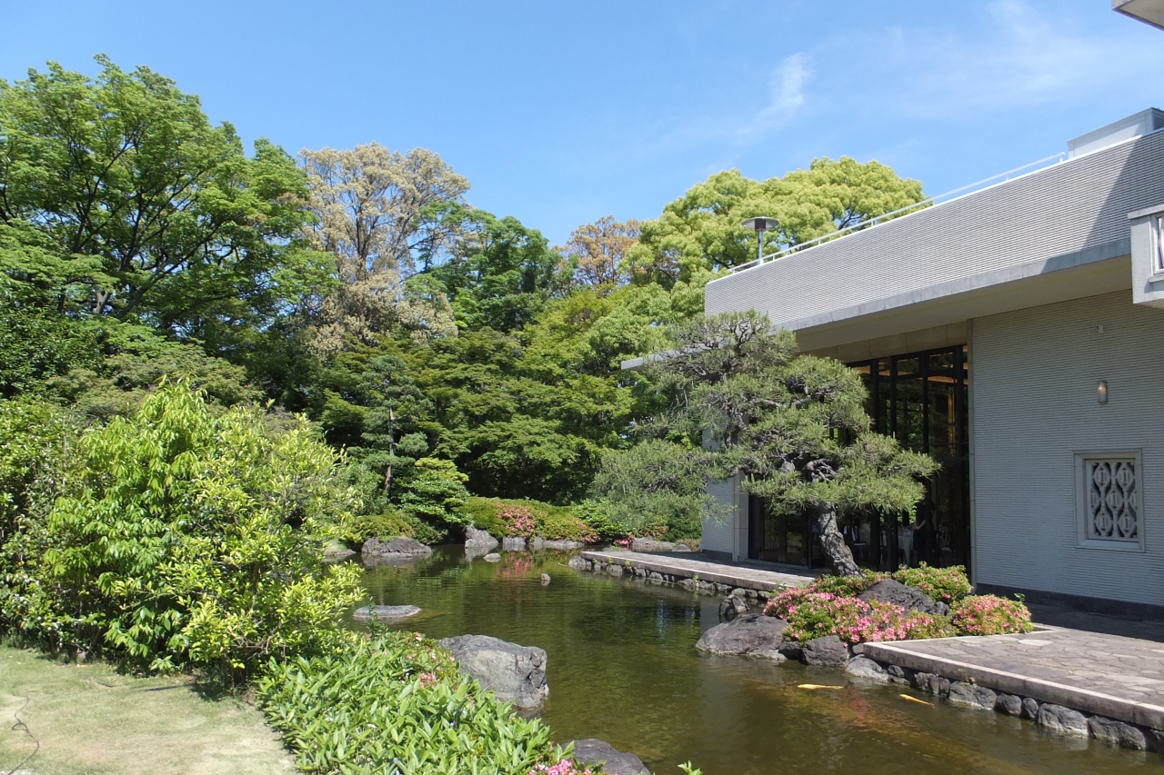 昭和34年(1959年)の竣工の大阪市の迎賓館。約4000坪もの敷地に広がる壮麗な芝生と緑豊かで、金色の錦鯉ばかりが泳ぐ庭園。結婚式などに使われている。ネットで調べると