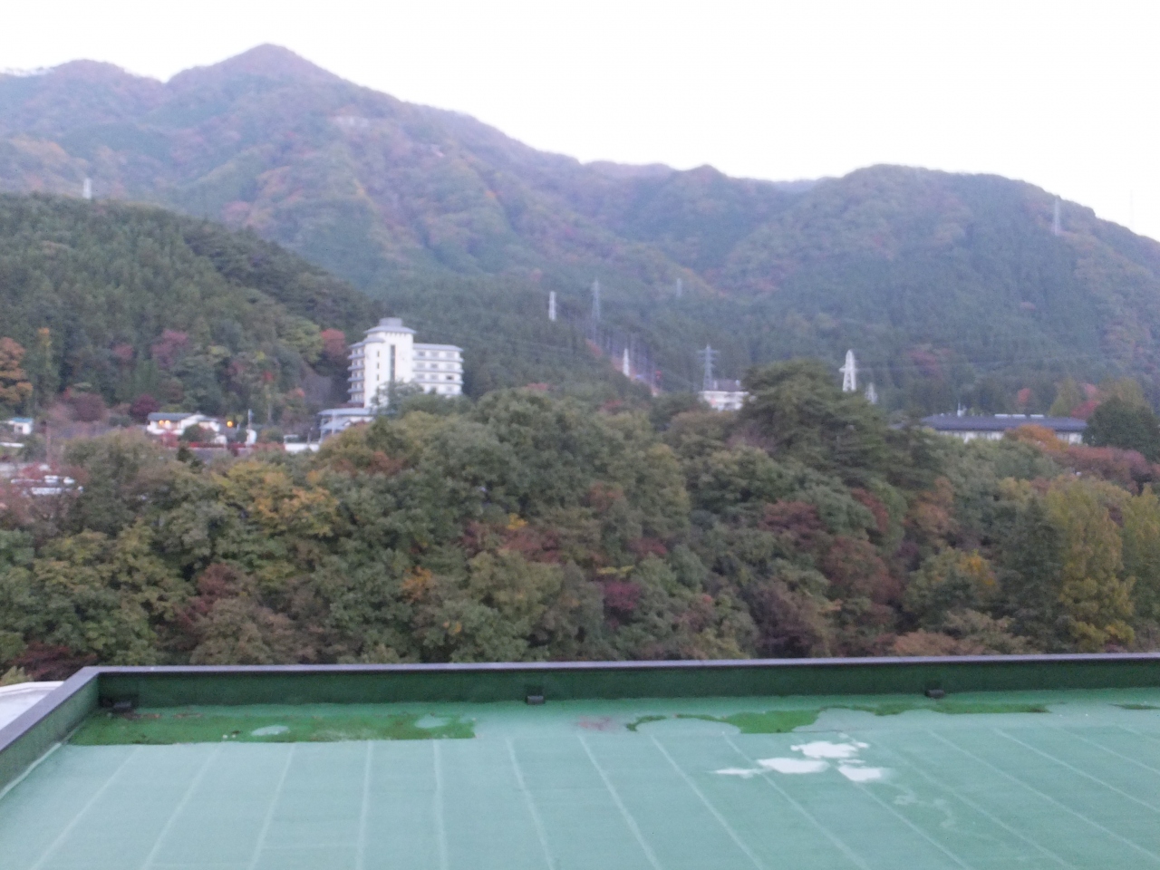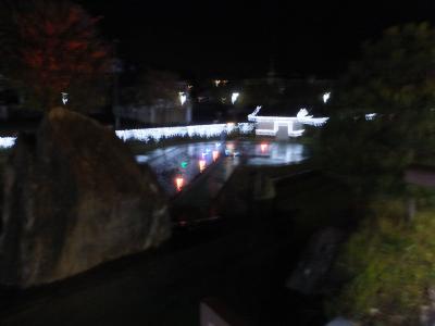 景色も湖畔の傍で雪化粧の白山連山が遠くに見え、湖に噴水装置があり夕方から照明が入り、噴水の高さは凄い。