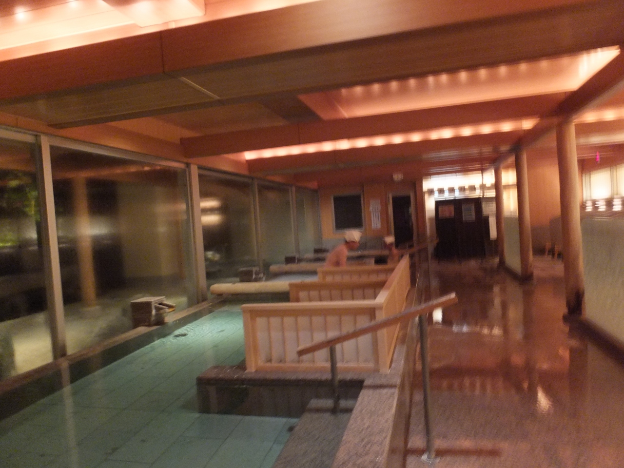 中は岩組の間から温泉が流れ出て20㎡ぐらいの大浴場に他に露天風呂2つと他に銀風呂や薬湯など合計9つもあった。