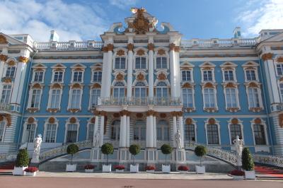 外壁も青と白のコントラストが見事で随所に金箔が施されている。宮殿には広大な庭園があり、ロシアで有名な詩人プーシキンの像がある。- 旅行時期