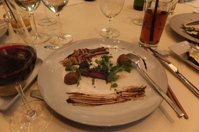 スズキのグリル、メインが豪州のロース肉、デザートはパンナコッタ、紅茶
