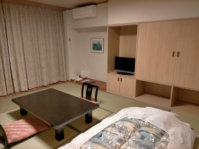 夜に小雨がぱらついていたので駅から歩くと遠く感じました。暗くてわからなかったが、海の近くに立つ観光ホテルとして、昔建てられた当時は観光客で賑わっていたのかもしれない。壁部屋なのは良かったが、室内にポット無しで給湯(お茶)から遠かった。トイレには髪の毛が落ちていました。ツイン部屋で一人だったので広かったのは良い点です。ホテルの建物は古くて暗い印象でした。