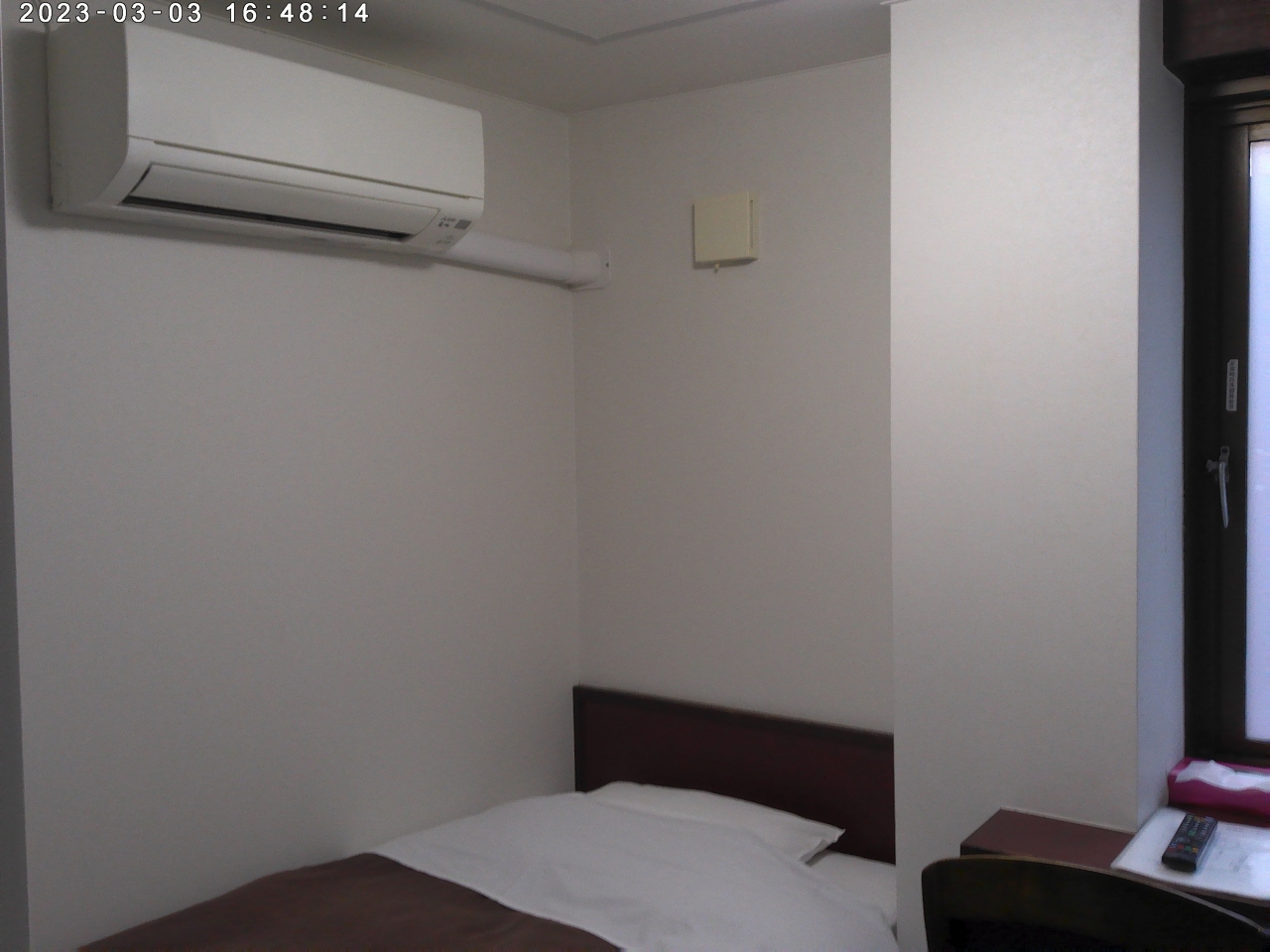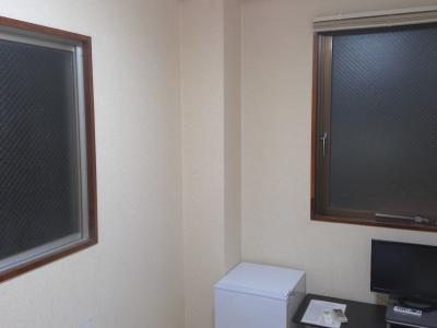 テレビ、エアコン、冷蔵庫付きで泊った部屋は角部屋でした。館内には棚に古い漫画雑誌を置いてるスペースもありました。道路に面してない隣はビルでそれだからかその方の窓にはブラインドもカーテンも付いていませんでした。この部類の宿にしては掃除はましな方でした。毎週一日はシャワーのみの日になっていて、湯船にお湯はありませんでした。