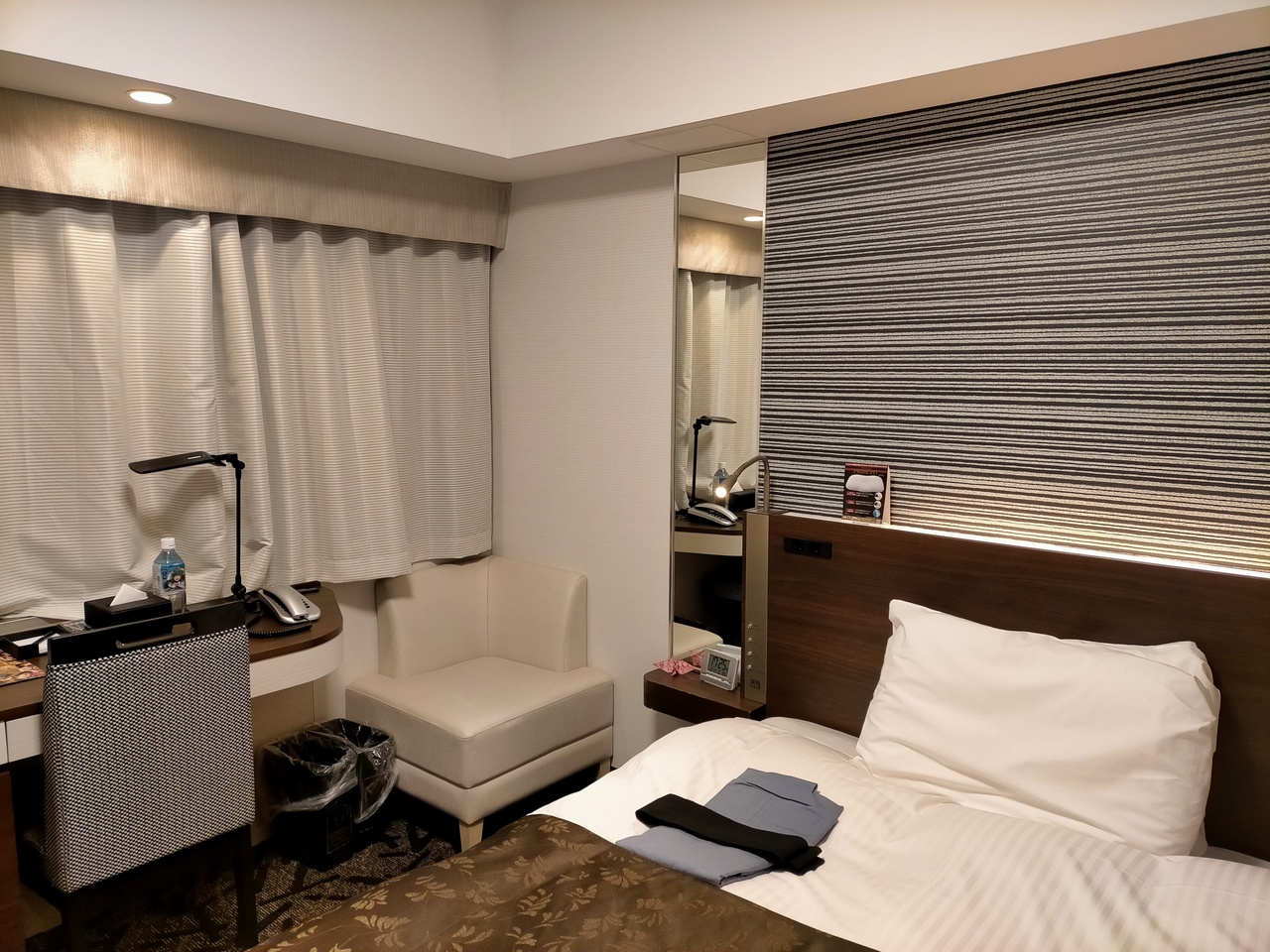 歯ブラシやタオルが他のビジネスホテルよりもかなり良かったです。VODで「鳩の撃退法」と「ホテルローヤル」を見ましたが無料なのが素敵。9階の部屋で室内も綺麗でした。旅行の割引使用して半額、さらにポイント使ったので激安で泊まれました。
