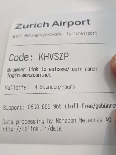 空港のWi-FiはSMS認証か搭乗券での認証が必要なので、後者の搭乗券での認証で利用しました。読取機はインフォメーションの側に有りました。チェックインカウンターの近くにも有るらしいです。搭乗券を読ませると、コードナンバーが書いてある紙が出てくるので、その番号を入力すれば4時間利用出来ます。