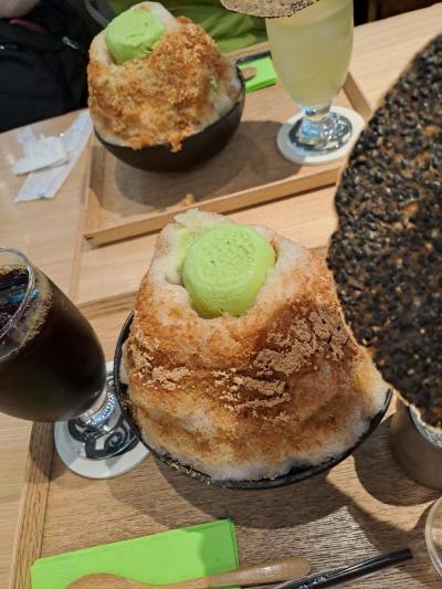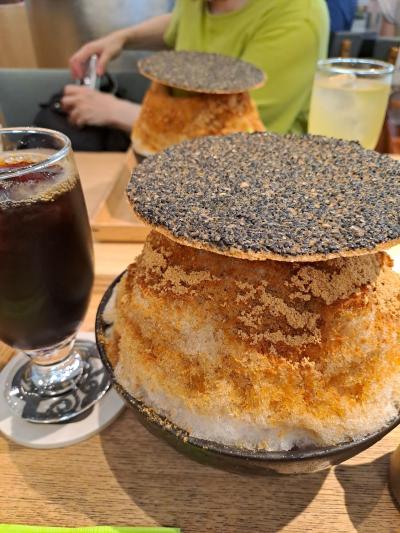 暑い暑い8月の初め、友人と甘い物を探して行き当たったお店でした。メニューを見て迷った挙げ句かき氷にしましたが中にはサプライズが隠されている、としかメニューには書いてない!大きな蓋付きのかき氷はごまクッキーの蓋を開けると氷の中に抹茶アイスと黒糖ゼリーが!