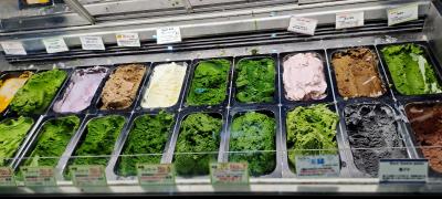 お茶の本場、静岡で抹茶アイス!抹茶アイスがグレード分けして並んでいるので。どれにしようか、眺めて迷います。抹茶だけでなく、玉露味というのもありました。夏は混んでいて店内の椅子とテーブルを確保するのが大変です。