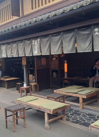 今宮神社脇のかざりやさんのあぶり餅。鬼平犯科帳のロケもやったという一角は注文すると土瓶に熱々のお茶と共に炙りたての甘味噌だれの串に刺したお餅が運ばれる、昭和、いや江戸時代にタイムスリップしたような心持ちで頂く。