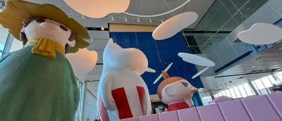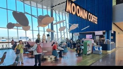 ヘルシンキ、ヴァンター国際空港の中のムーミンカフェ。何回かヘルシンキで乗り換えているけれど、開いているのを見たのは初めてだった。先回,先々回はコロナで飲食関係はもちろん、お土産のショップも閉まっていたのを覚えている、丁度JAL便の搭乗ゲートの近くで紙コップでコーヒーを買い、搭乗を待っていることができた。ムーミンファミリーのフィギアが可愛い。