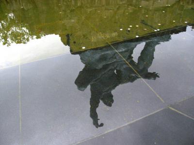 公園は奥に向かってやや細長い敷地で、手前に平和の泉があり、奥には、 大きな青銅製の平和祈念像があります。