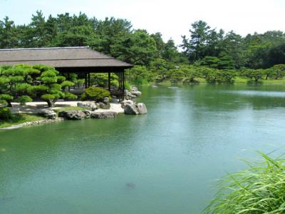 ここは本格的な日本庭園で、池や築山の間を巡る小道が続きます。モデルコースが幾つかあって廻るのに便利ですが、園内は広いので暑い時期は休憩しながら周るのが良いです。