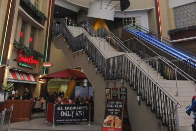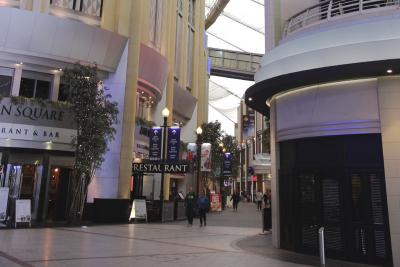通路に沿って、バーやレストランが並んでいたり、広場があったりします。