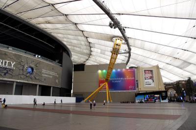建物はテントを張ったようなドーム型で、中央がアリーナになっていて、そのアリーナを取り巻くようにグルッと通路が通っています。