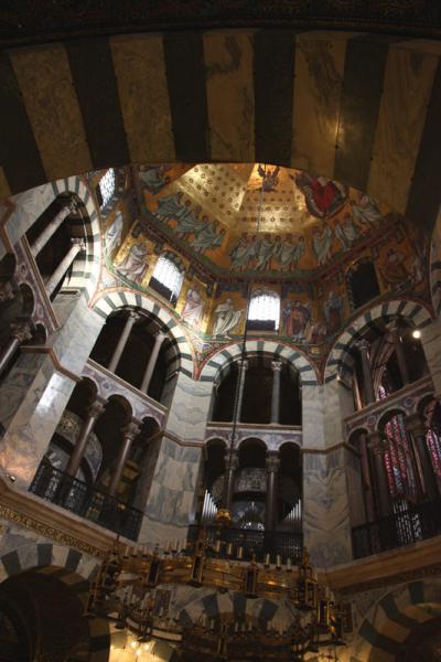 ベルギー国境に近いアーヘンの街の世界遺産である大聖堂は、そもそもカール大帝が建立した王宮礼拝堂である聖マリア教会が基礎となっていて、その後にゴシック調の建物が増築されたことで現在のような複雑な形の建物になったそうです。