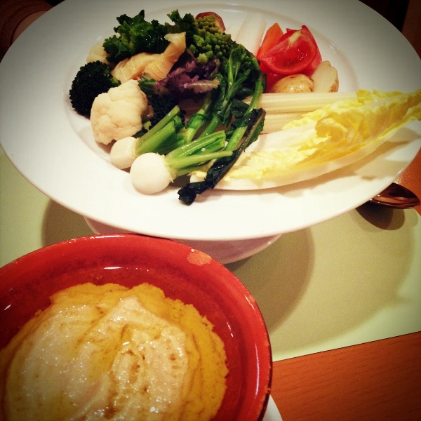 バーニャカウダ、ピザ、リゾットをいただきました。