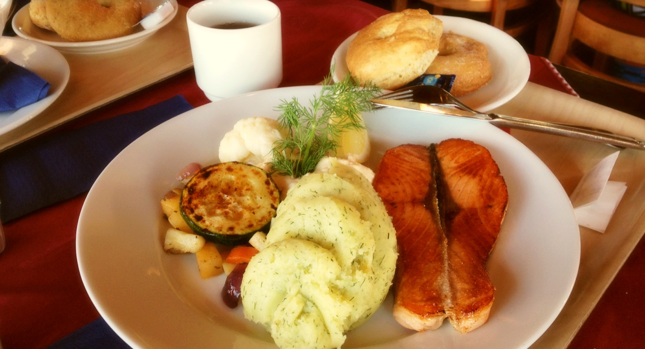 特にサーモンの焼いたのはマッシュポテトの量が半端ないので一人ではきついと思います。