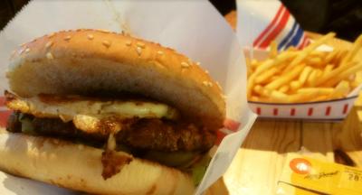 お店に入ったときは満員でしたが、私たち以外はお持ち帰りのお客さんばかりだったので店内のテーブルで食べることが出来ました。