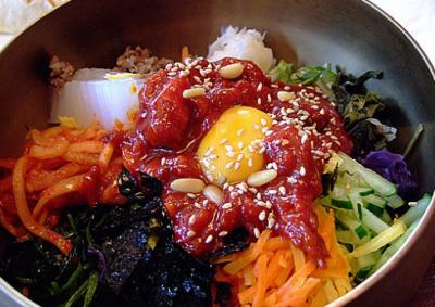 ビビンパは色々なものを入れて混ぜて食べるもの。