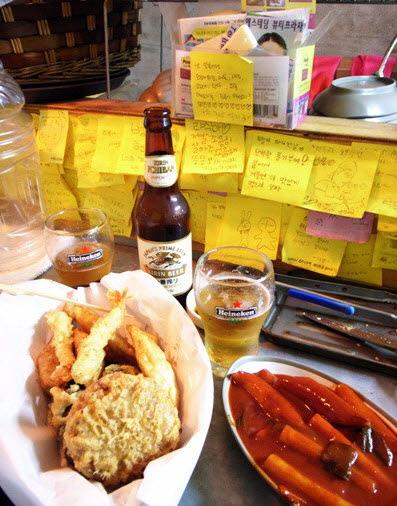 韓国といえば道に並んでる屋台ですが、このお店は屋台の感じでありながらも、屋台よりゆっくりでき、揚げ物がお勧めのお店です。ほかの屋台では食べられない特別な揚げ物がいっぱい~!トッポッキ、スンデなど多様なメニューも準備されています。