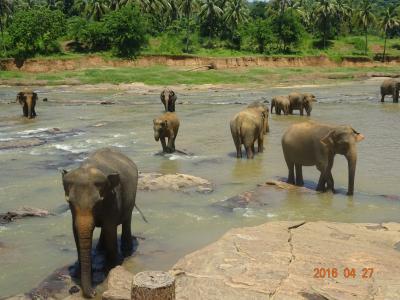象の孤児院の観光を楽しみにしていましたので、初めて訪れますと多くの象が象舎にいたり、或は時間が来ますと近くの川に水浴びを楽しんでいる姿に遭遇しました。思い思いに行動する象や、飼育員に体を洗ってもらい象などが目に留まりました。