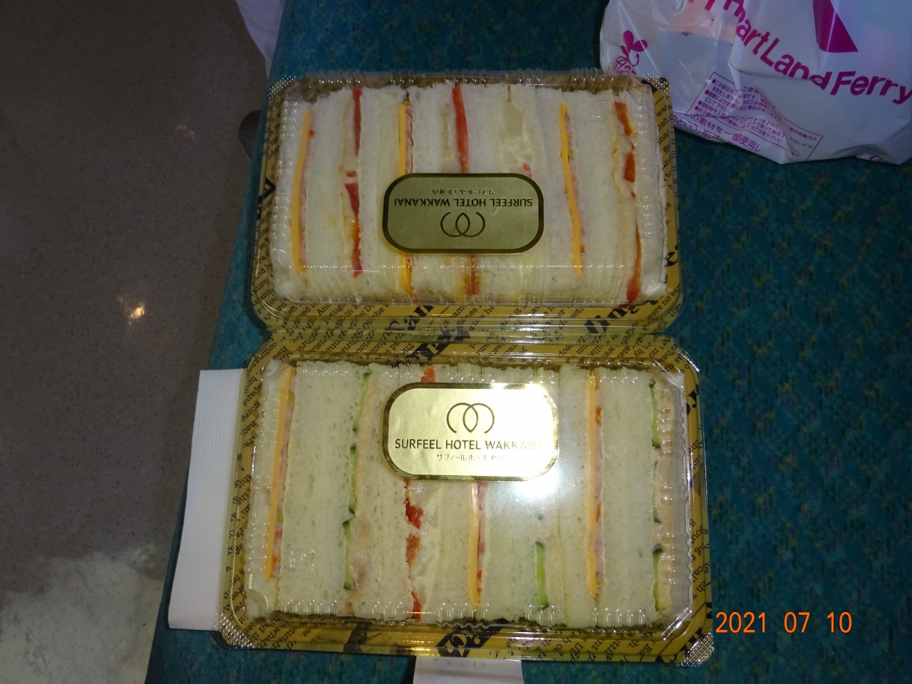 又有難かったことは、朝食付きで予約してありましたので、チェックインの時に明朝早く出発するため、朝食を食べる事が出来ない旨を伝えますと、フェリー内で食べる事の出来るサンドウイッチに変更していただきました。