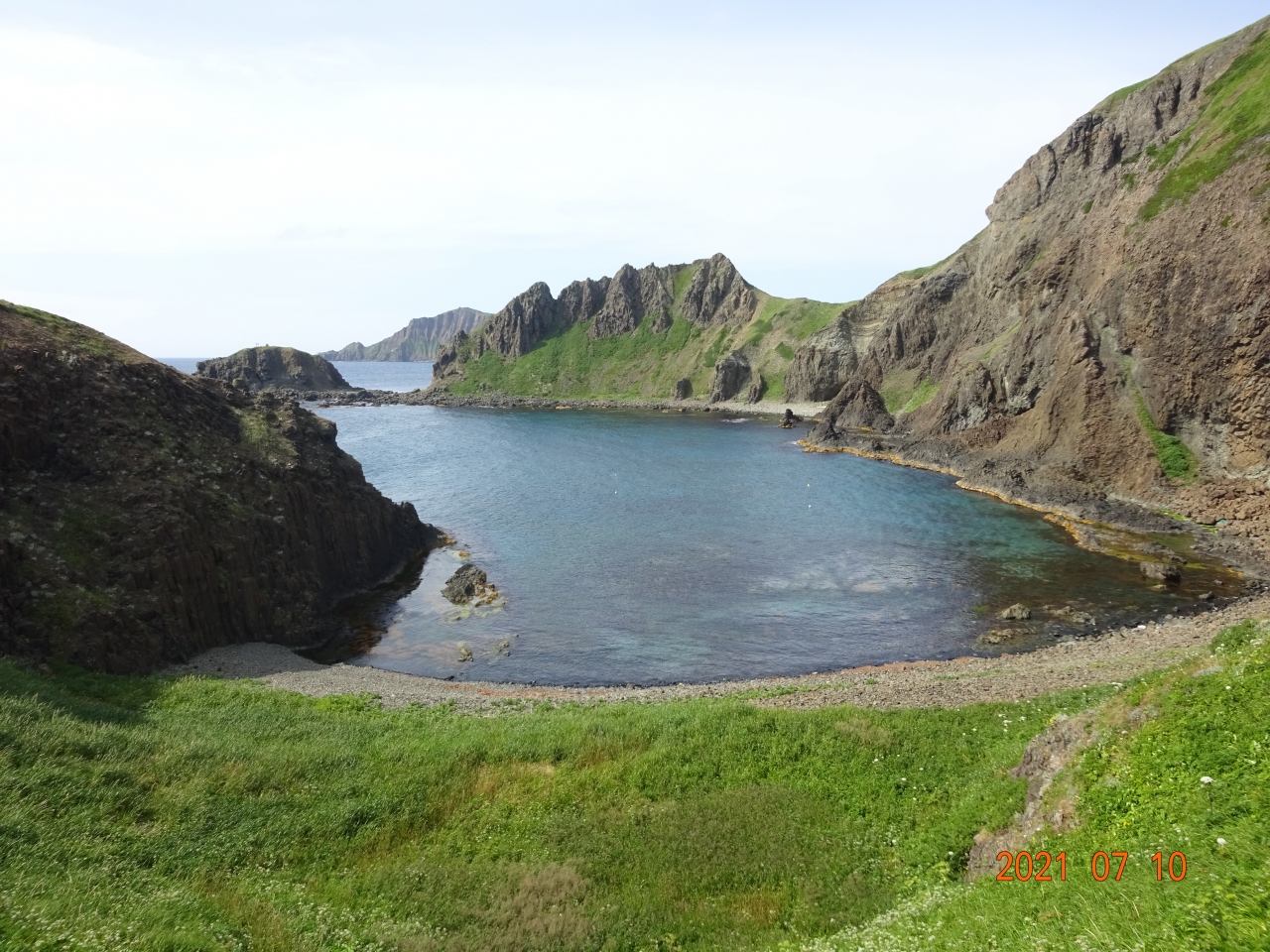 利尻定期観光Aコースを利用して、利尻島の主だった場所の観光を約3時間かけて回りました。その中で利尻山は何処からも見えますが、この場所からの景観も気に入った場所となりました。利尻山は以前火山でしたので、ここから流れ出た溶岩で海岸が出来上がっています。その景観をバックに眺める利尻山もとても映えます。