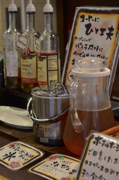 1階レセプションには宿泊者が自由に無料で利用できるドリンクバーが