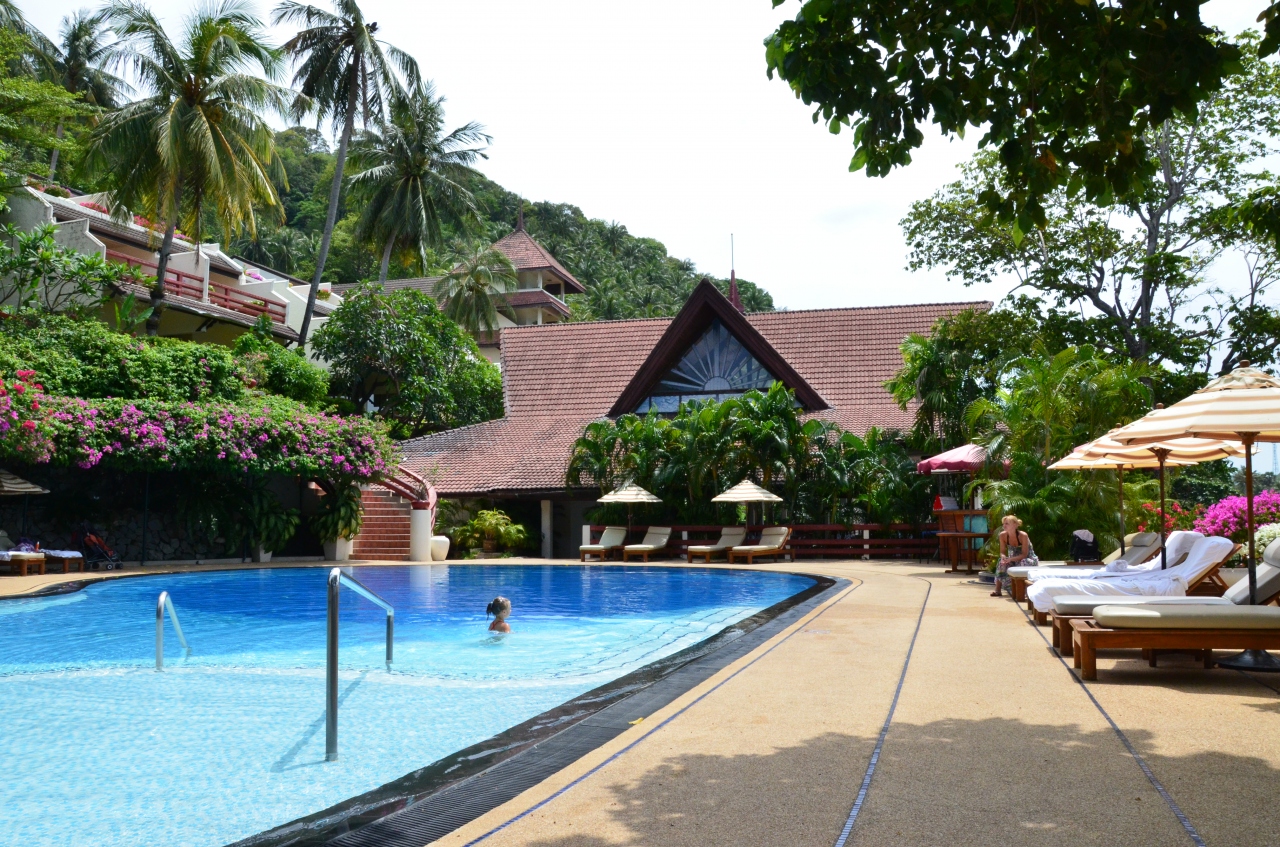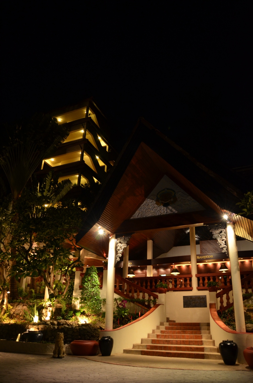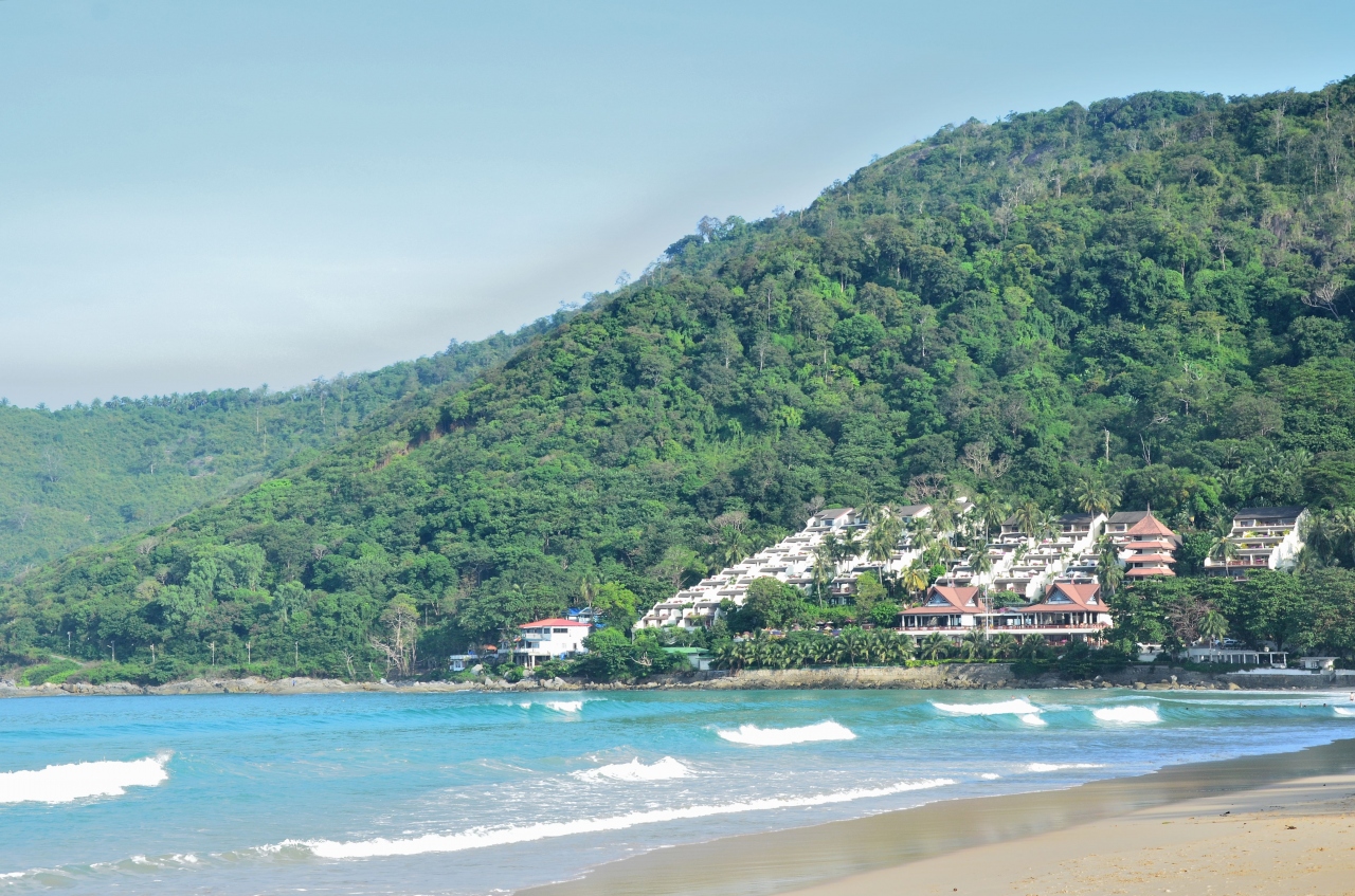 ナイハンビーチを見下ろす斜面に建つ、歴史あるホテルです。