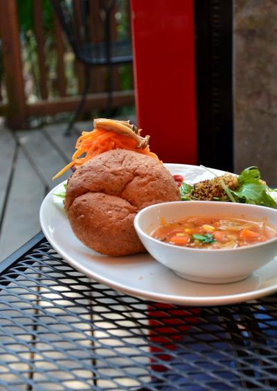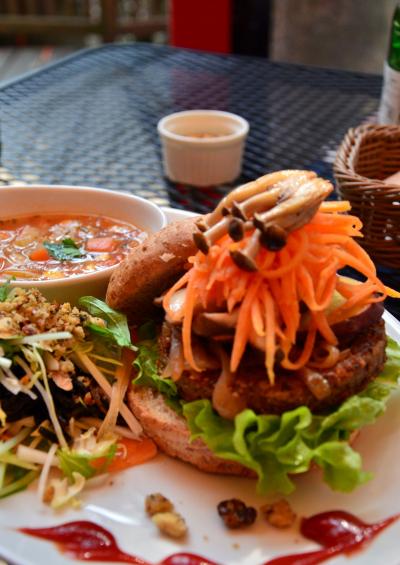 ベジタリアンフードですので、注文したバーガーのパテも大豆製。