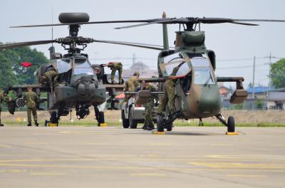 AH-64D アパッチ戦闘ヘリ等、機数が少ない珍しい機体が間近で