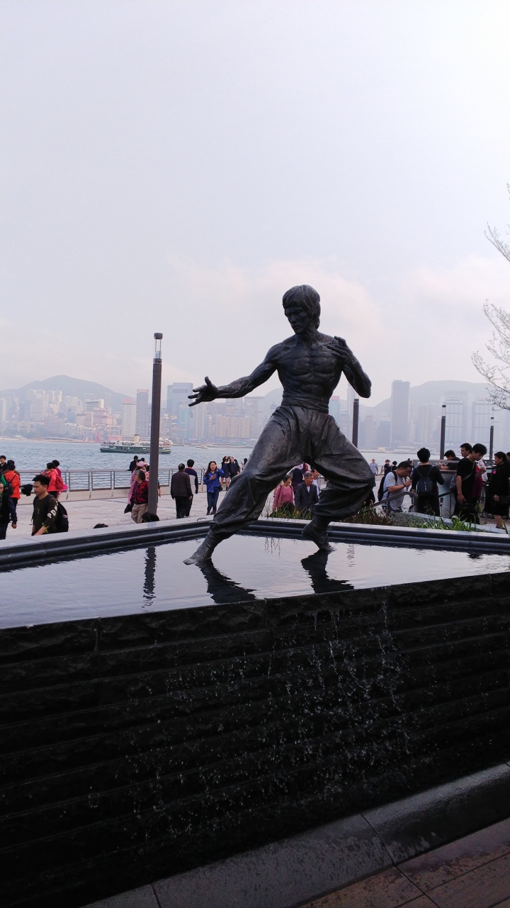 香港のスター「ブルースリー」の銅像や、俳優さんたちの手形があります。