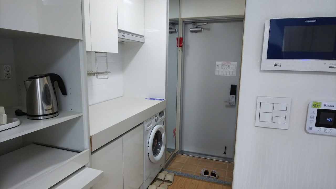 もともとワンルームマンションだったのか、キッチン、洗濯機がありました。