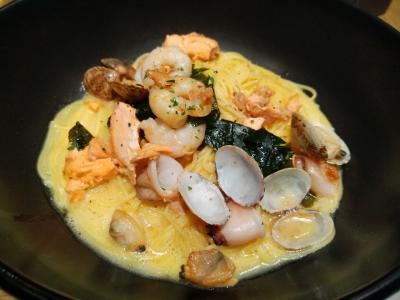 「魚介のレモンカルボナーラ」(商品名、違うと思いますが内容はこんな感じ)