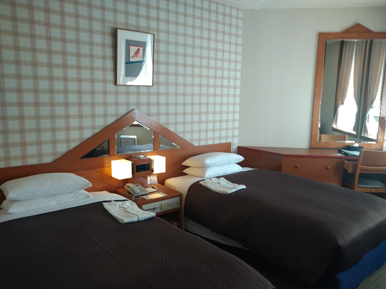 ツインの広いお部屋にアップグレードしていただきました。