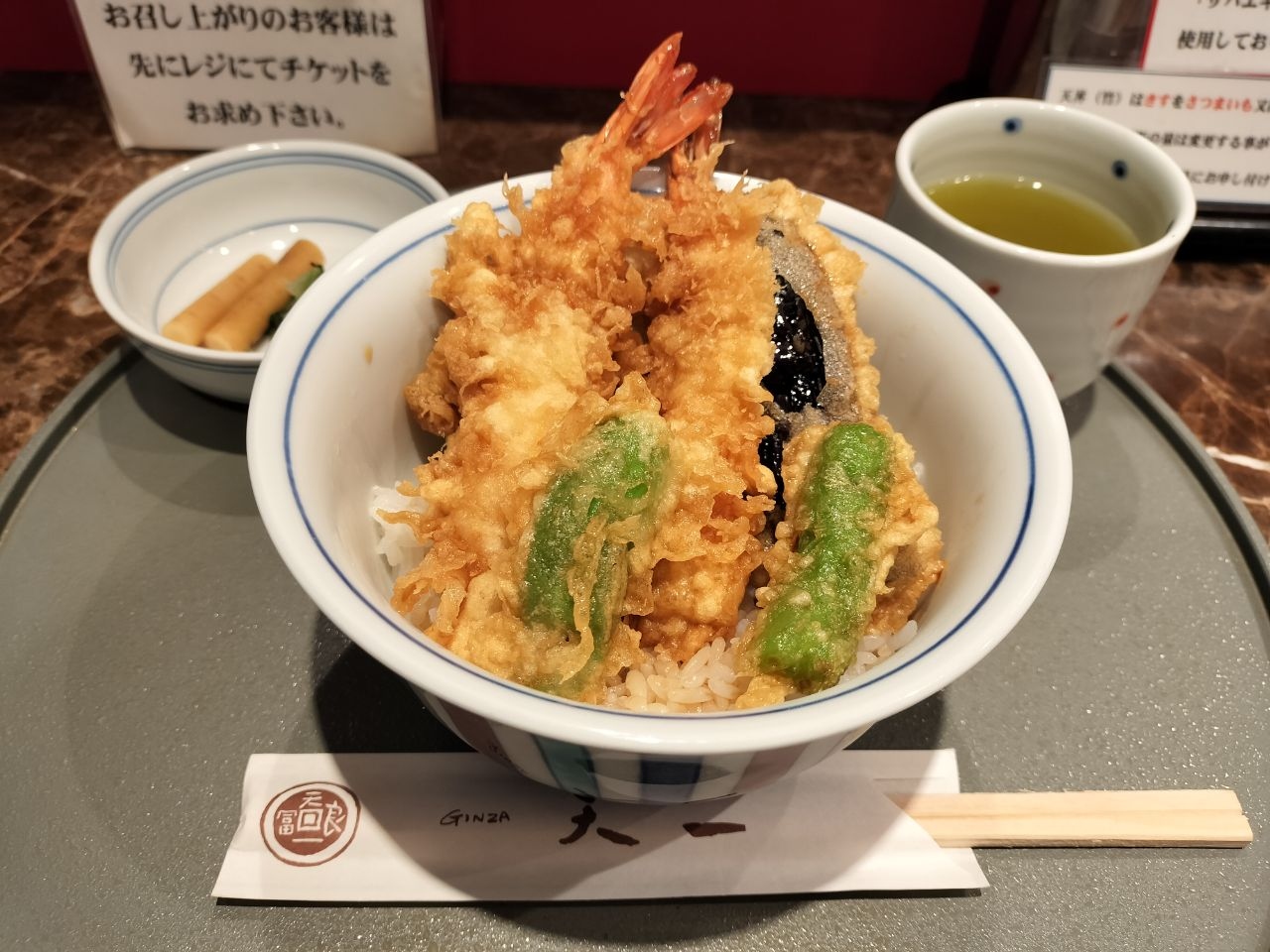 一度、入ってみたいお店でした。上野松坂屋地下1階、天一さんのイートインスペースです。イートインスペースと言っても室内にあります。注文は先会計で入口で行います。そして注文が書かれた紙を店内のスタッフさんに渡します。天ぷらは揚げたて熱々で美味しかったです。ご飯は普通。場所柄を考えるとお値段は妥当と思います。