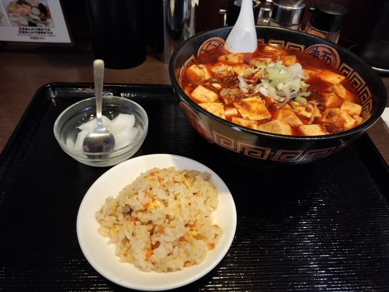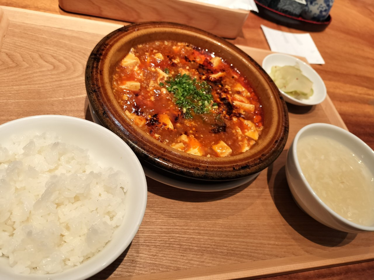 程よい辛さの麻婆豆腐とご飯、美味しい。