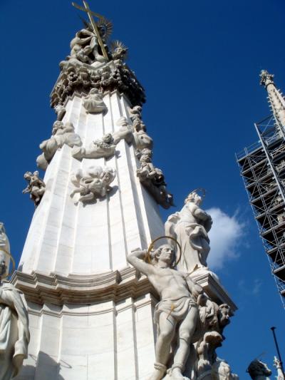 王宮の丘にある三位一体の塔。バロック風の黒死病を生き永らえた喜びを素直...