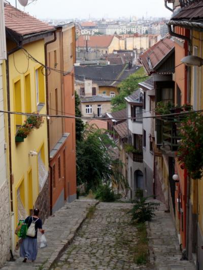 グルババ通り。石畳の急な坂道で昔トルコ人の町だったこの地区を今でも偲べ...
