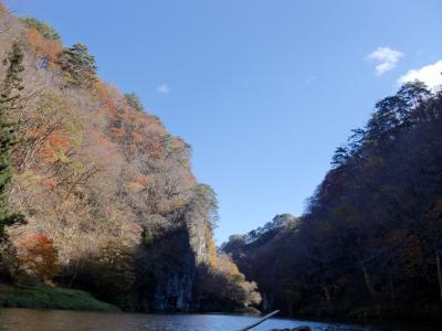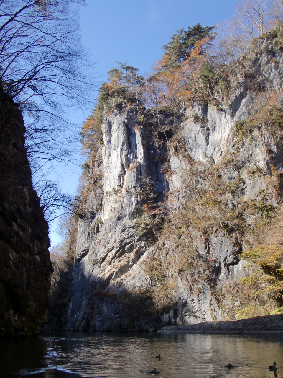 この時期は紅葉シーズンで、まだ紅葉が赤く絶壁に染まっていて