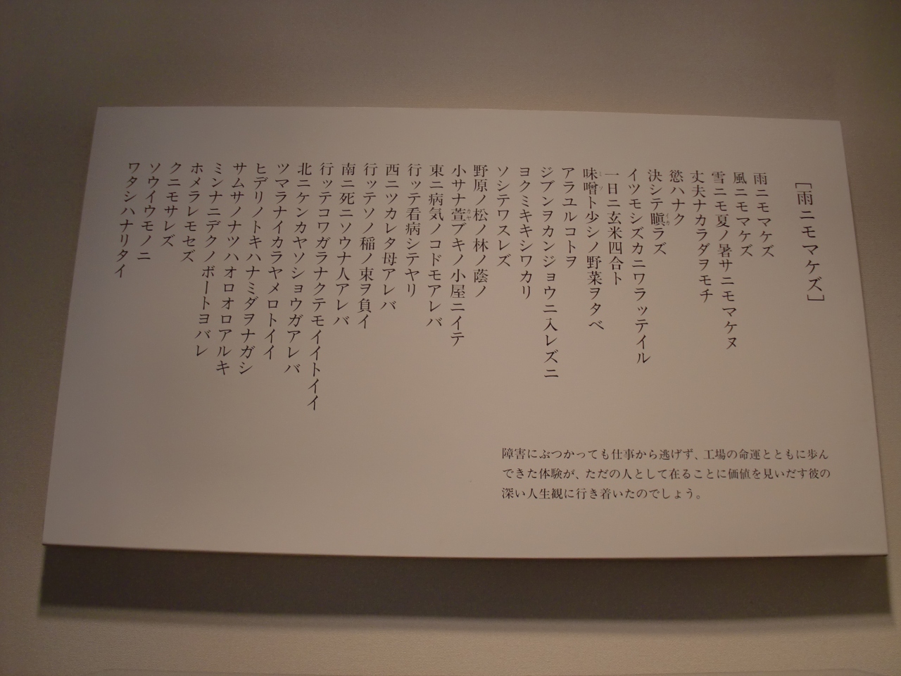 宮沢賢治の「アメニモマケズ」の原本が展示されていたりと