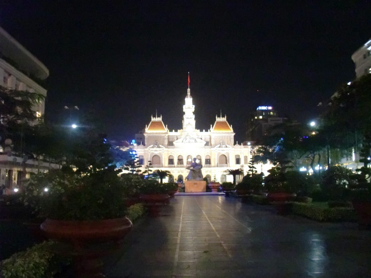 昼間でも良いのですが、夜はライトアップされていて薄暗いホーチミン市内に