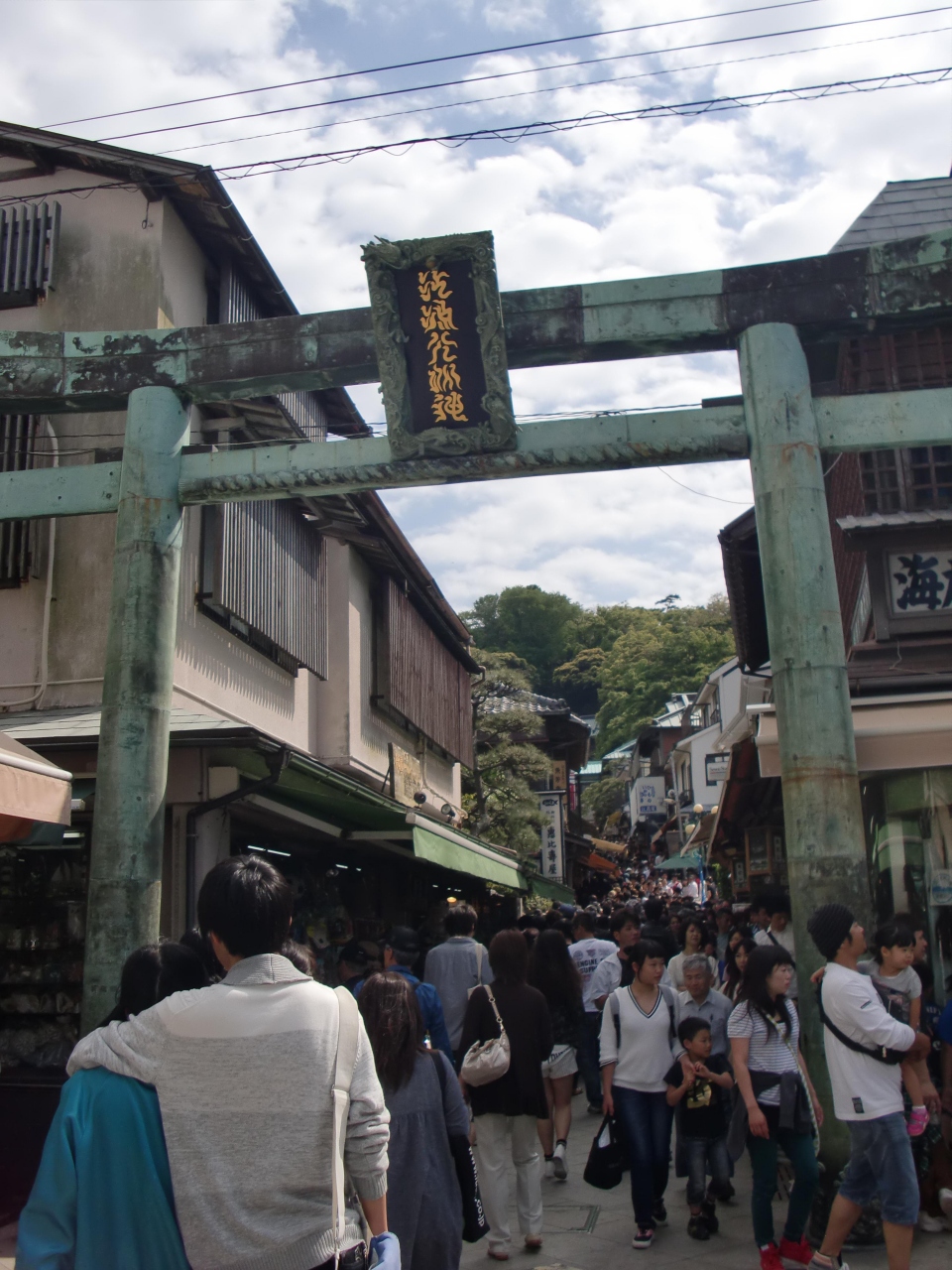 - 小田急江ノ島駅下車、徒歩。鳥居から参道を渡って頂上を目指します☆
